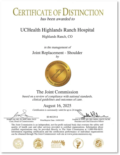 Nuestro equipo de cirujanos ortopédicos y especialistas capacitados en UCHealth Orthopedics - Highlands Ranch Hospital le brinda atención de la más alta calidad, profesional y ética para sus afecciones y lesiones musculoesqueléticas.