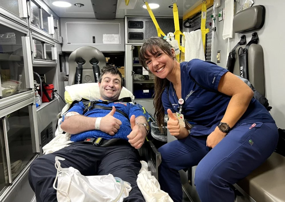 Nurse takes ambulance ride with patient to keep him healthy as he celebrates his new home